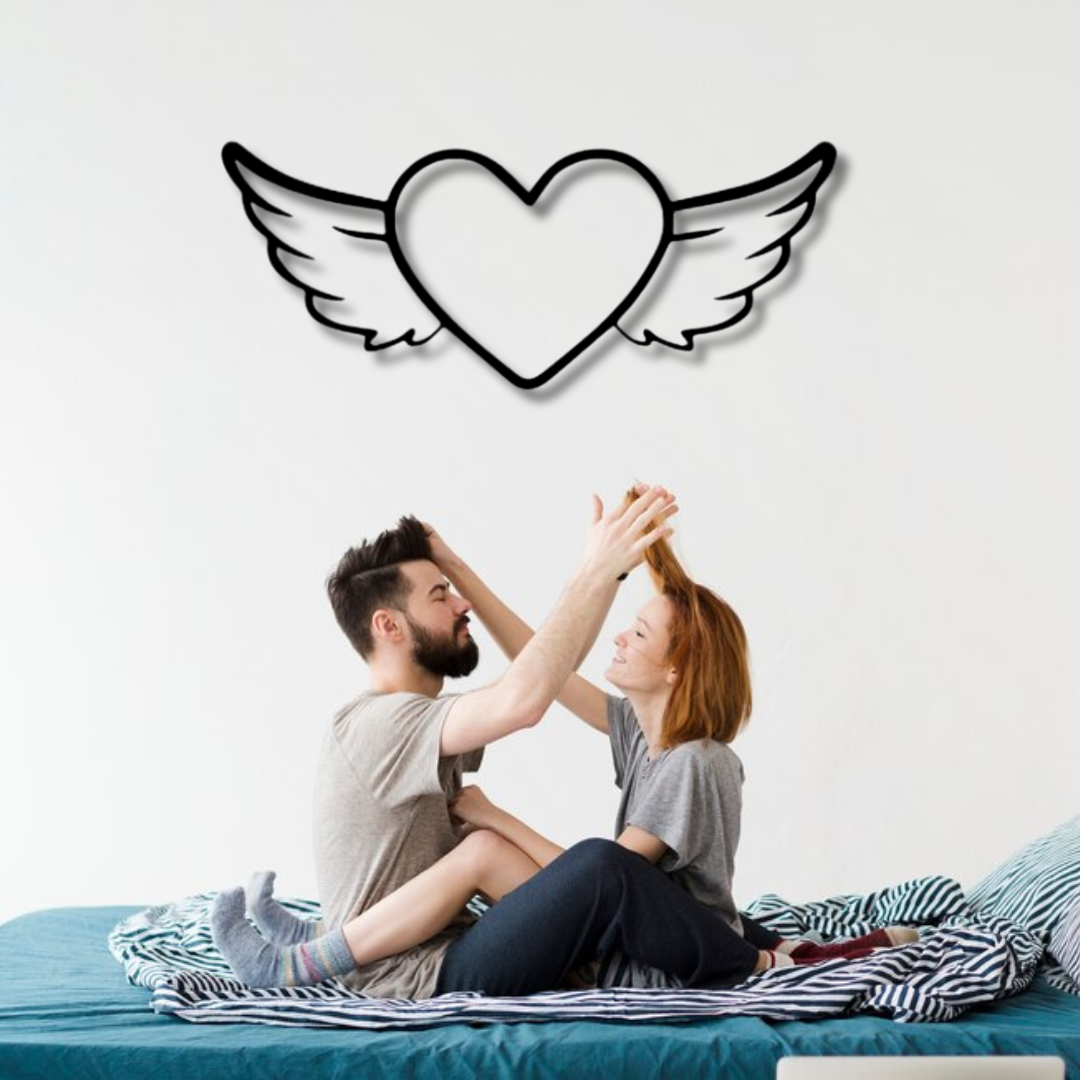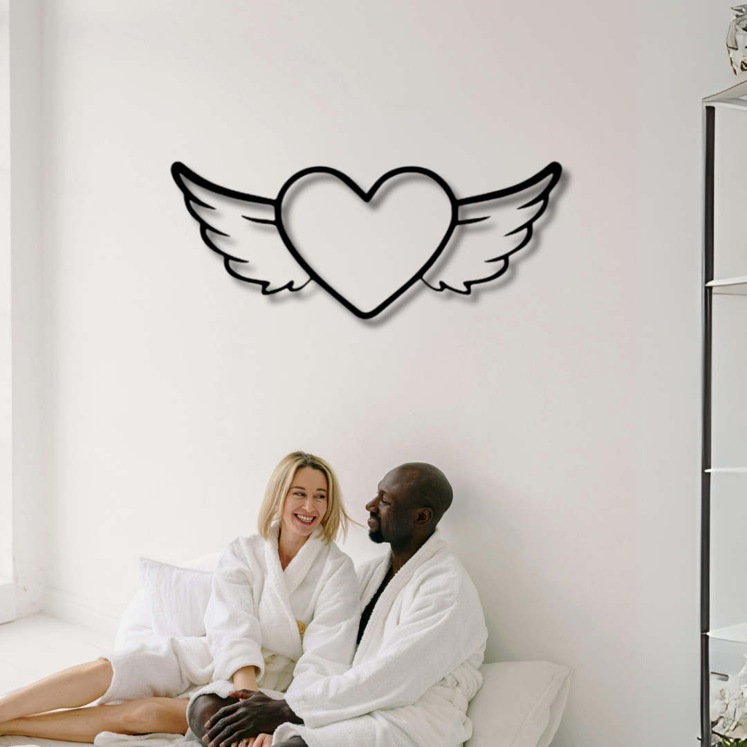 لوحة جدارية معدنية على شكل قلب مجنح