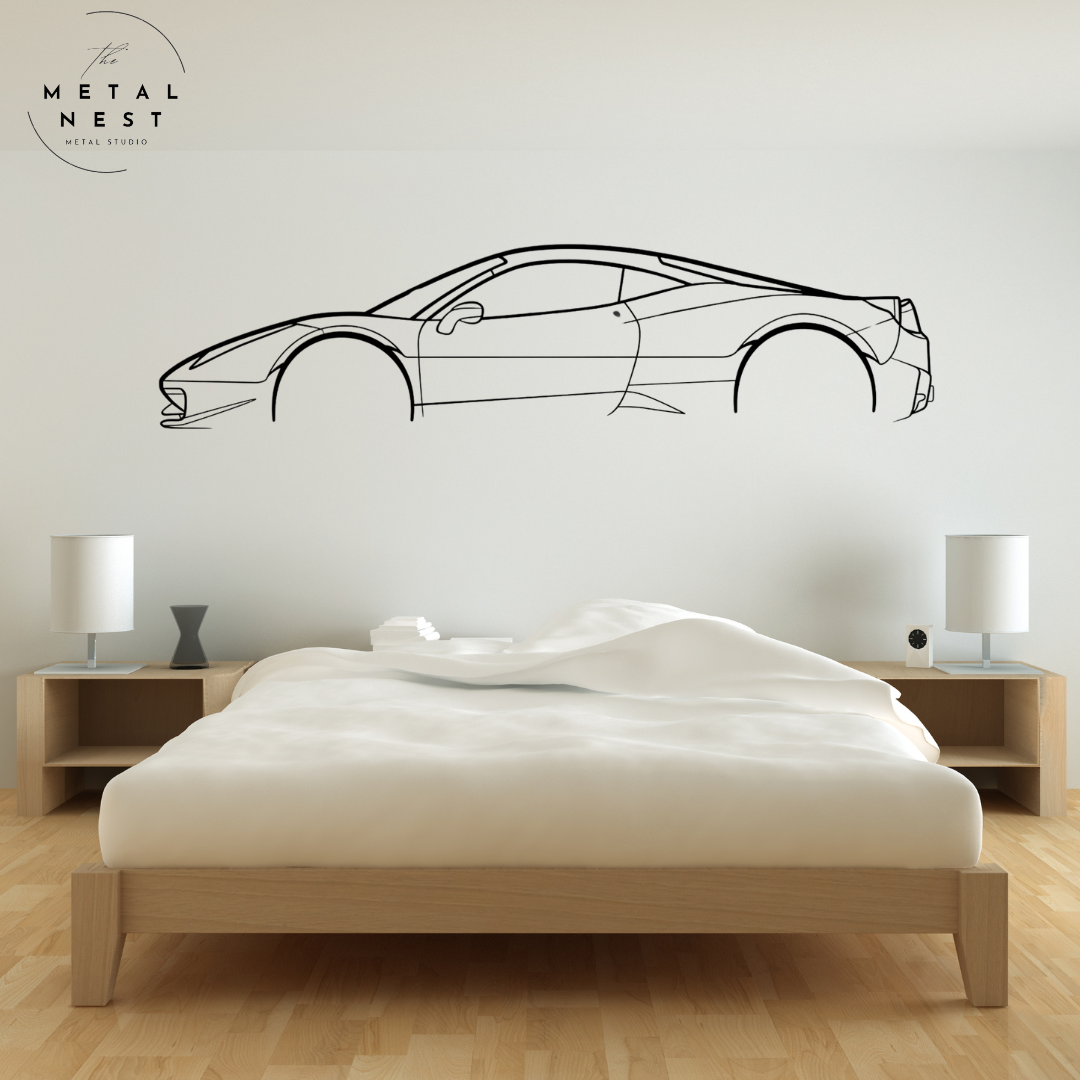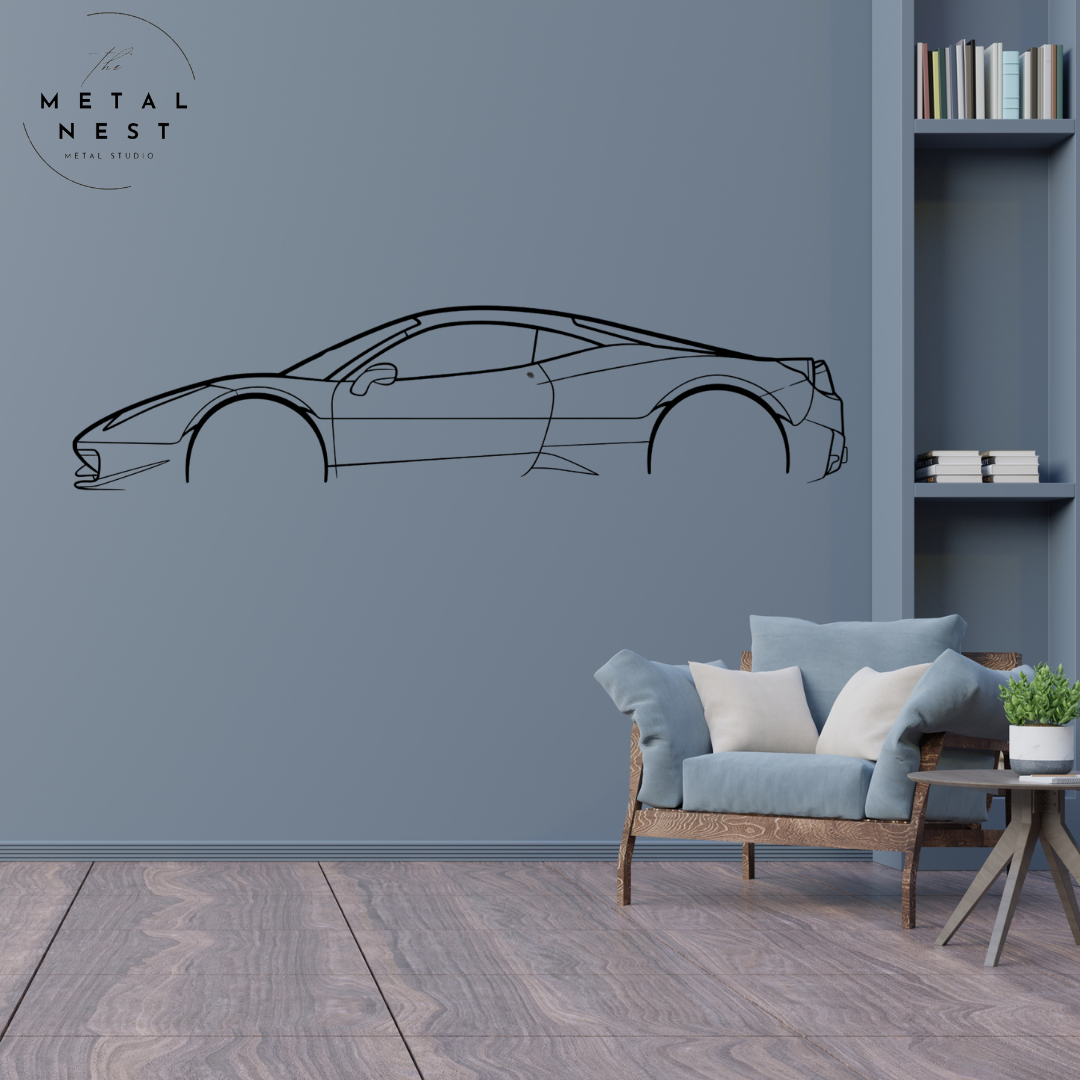 Elevate your space with this sleek Ferrari metal wall art, capturing the iconic silhouette in striking detail. Perfect for car enthusiasts, this piece adds a touch of luxury and speed to any room.