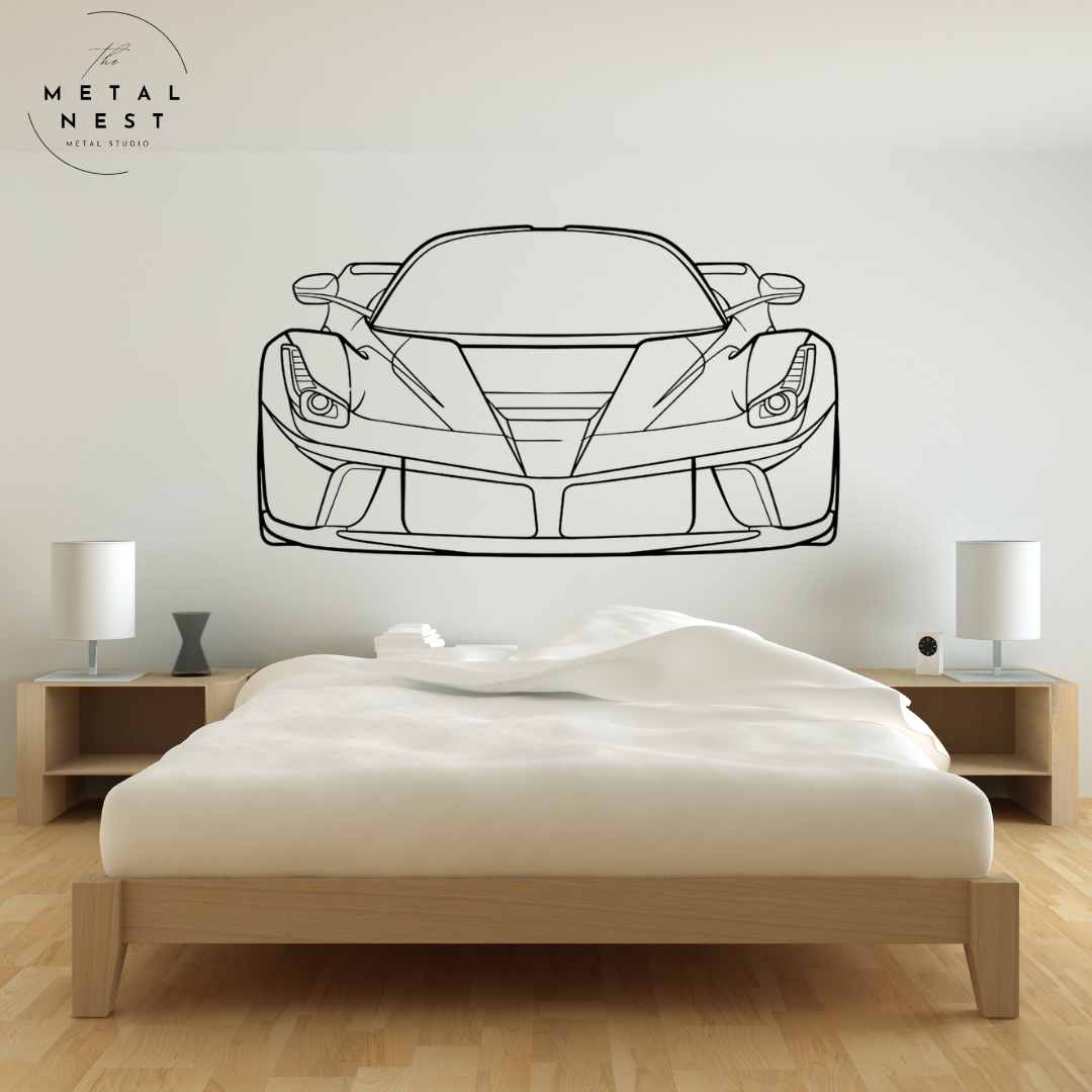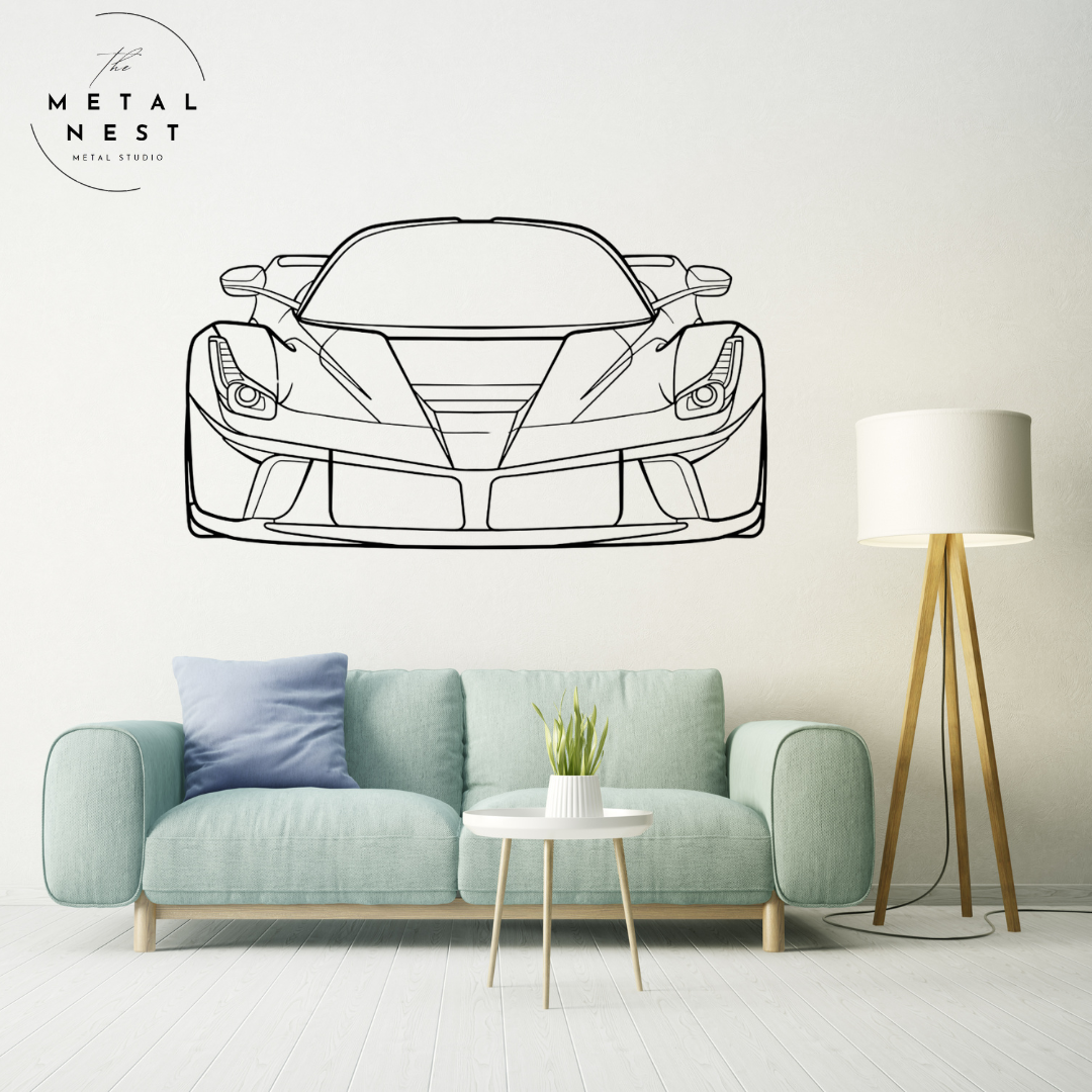 Elevate your space with this sleek Ferrari metal wall art, capturing the iconic silhouette in striking detail. Perfect for car enthusiasts, this piece adds a touch of luxury and speed to any room.
