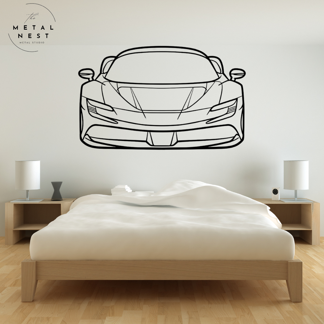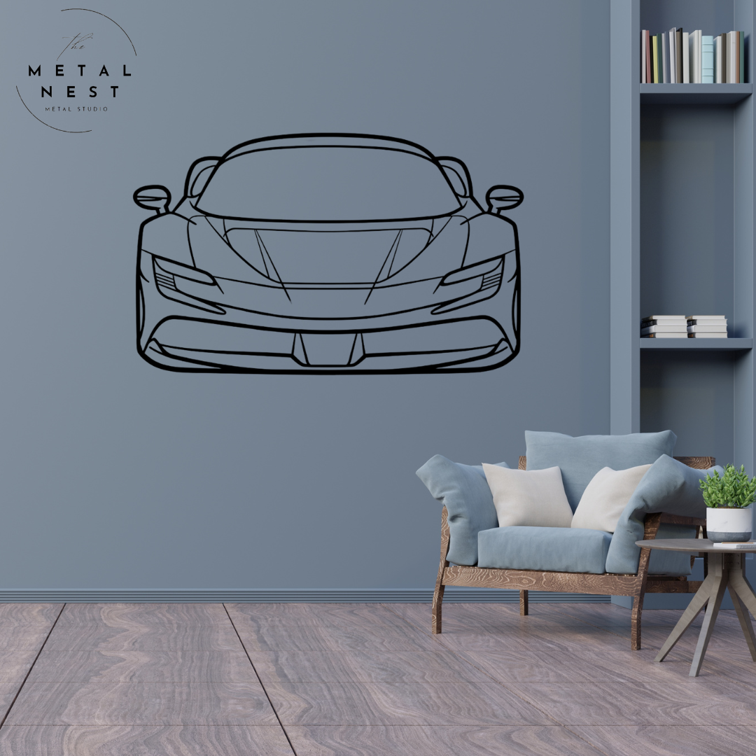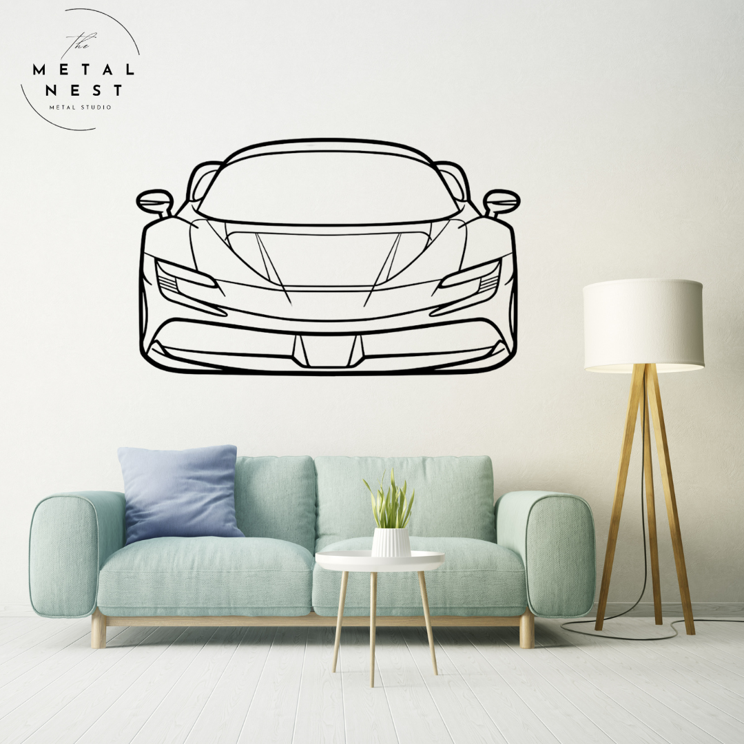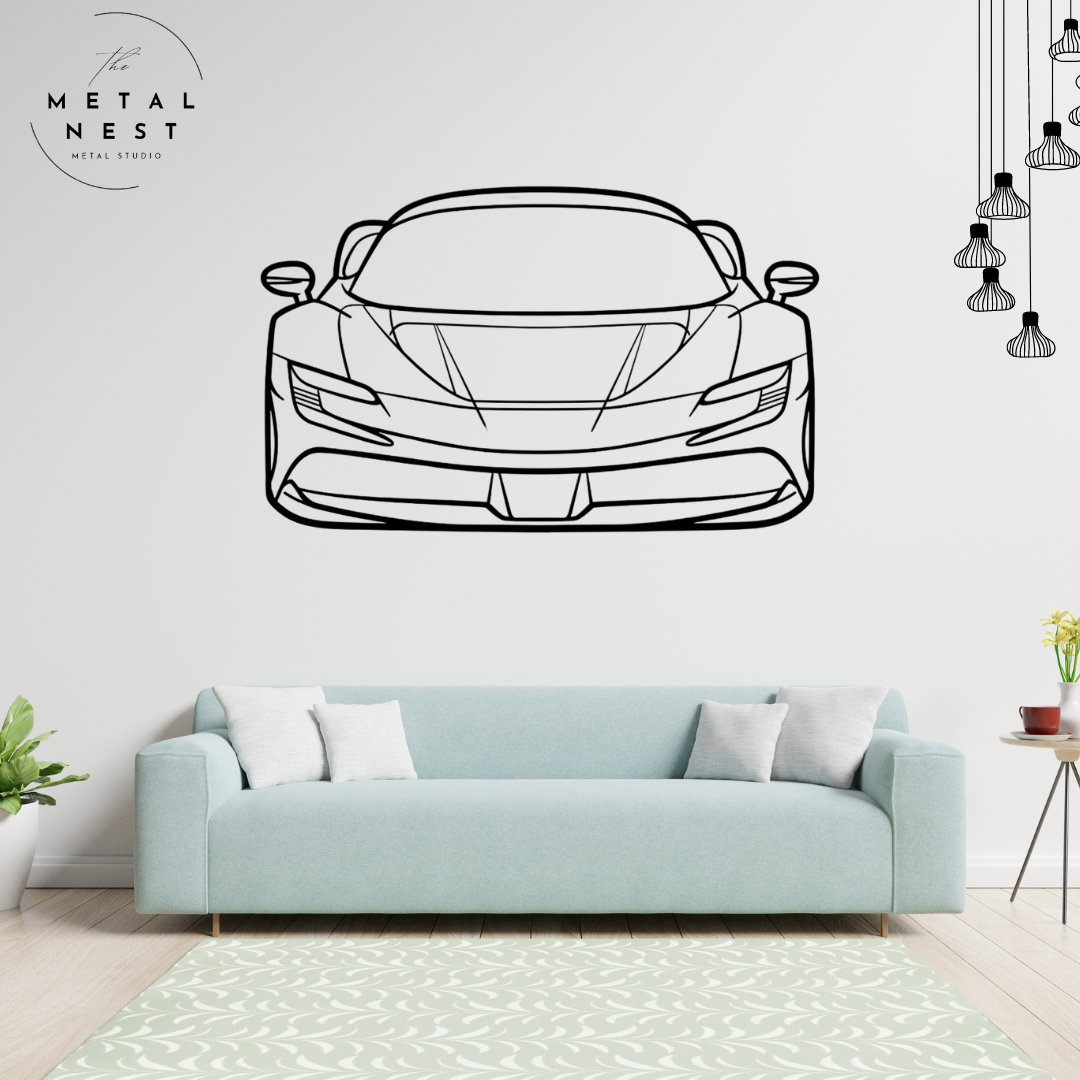Elevate your space with this sleek Ferrari metal wall art, capturing the iconic silhouette in striking detail. Perfect for car enthusiasts, this piece adds a touch of luxury and speed to any room.